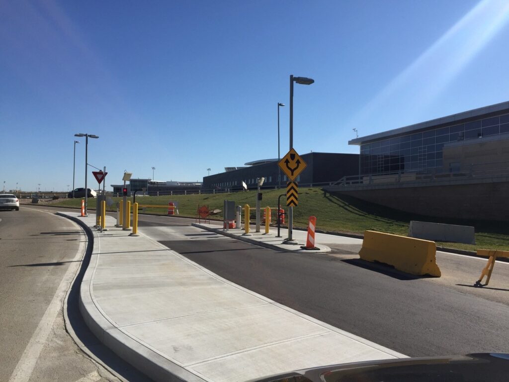 Installation of dual exit lanes for airport transportation including general contracting, electrical services and civil work.